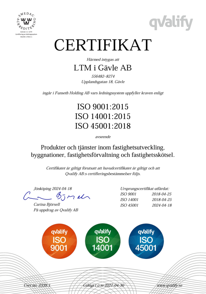 Vi arbetar för att uppfylla ställda och bindande krav och ständigt förbättra